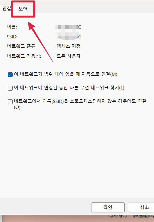 4단계: 새 창이 뜨면 '보안' 탭으로 이동합니다.