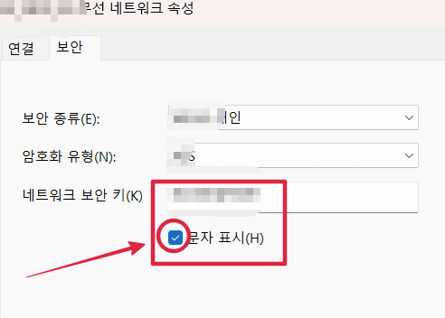 5단계: '네트워크 보안 키' 옆에 있는 상자에 저장된 Wi-Fi 비밀번호가 있습니다. '문자 표시' 체크박스를 클릭하면 비밀번호가 보이게 됩니다.